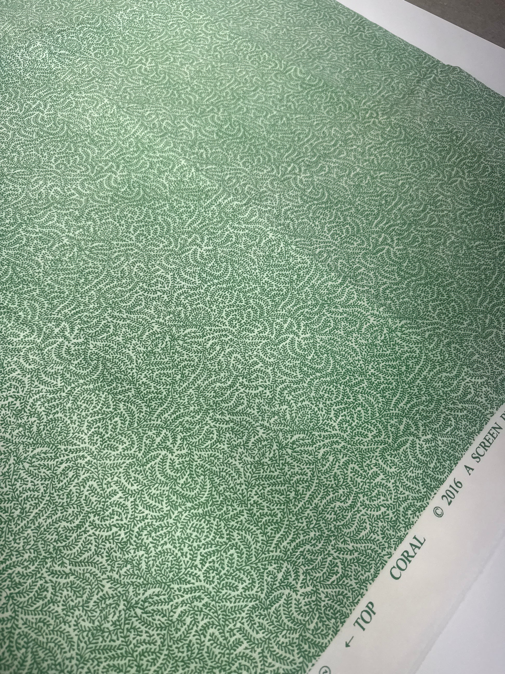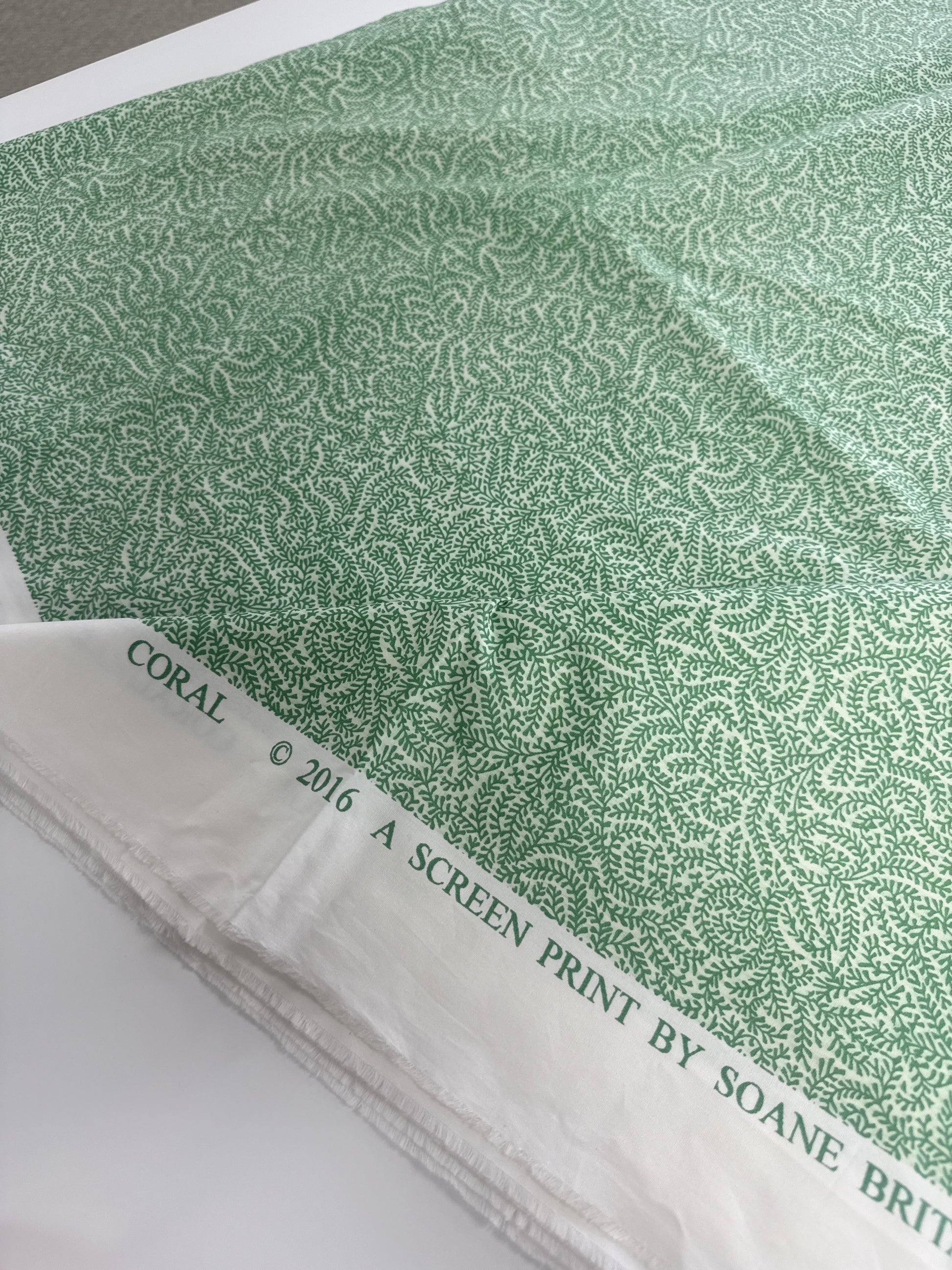 Soane Britain, coral, green, by the yard